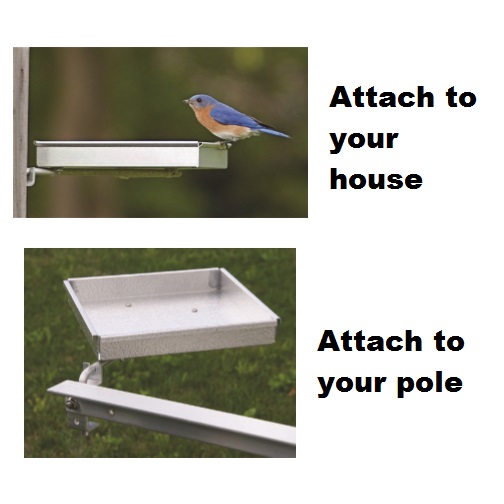 Trays can be mounted on your wooden house (like a T-14) or to the rings of a Gemini Gourd rack or the angle arms of a Super System or AAA rack. You can even mount these on to a wooden post. You decide.
