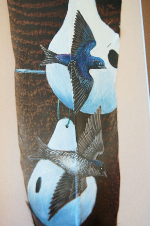 The artist paints these scenes on the large tail feathers of Turkeys.