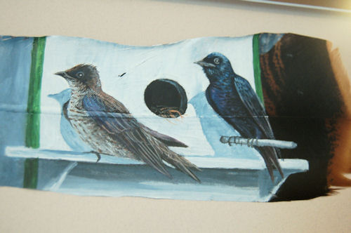 The artist paints these scenes on the large tail feathers of Turkeys.