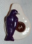 The gourd is a creamy white with a dark brown entrance hole. The adult male Purple Martin is a deep dark purple and appears to be clinging to the side of the gourd with his head turned to the side. Beautiful and sleek this pin will make people look twice.
